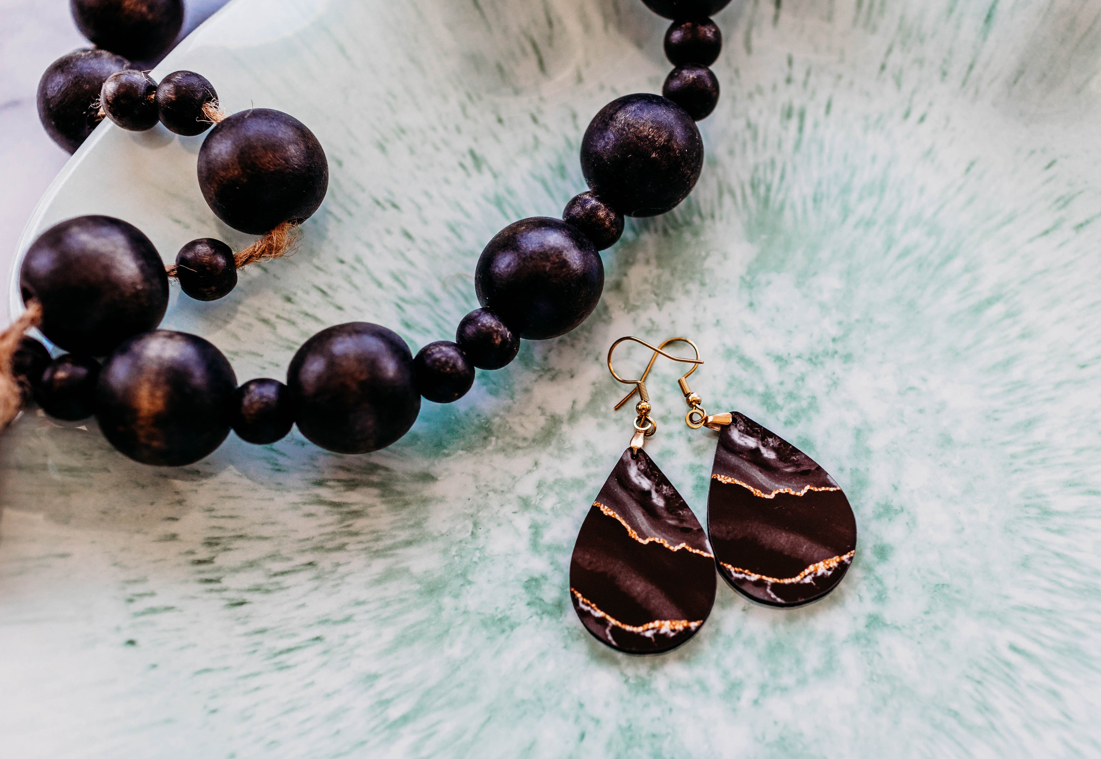 Black & Gold Teardrop Earrings – Handmade Lightweight Statement Jewelry