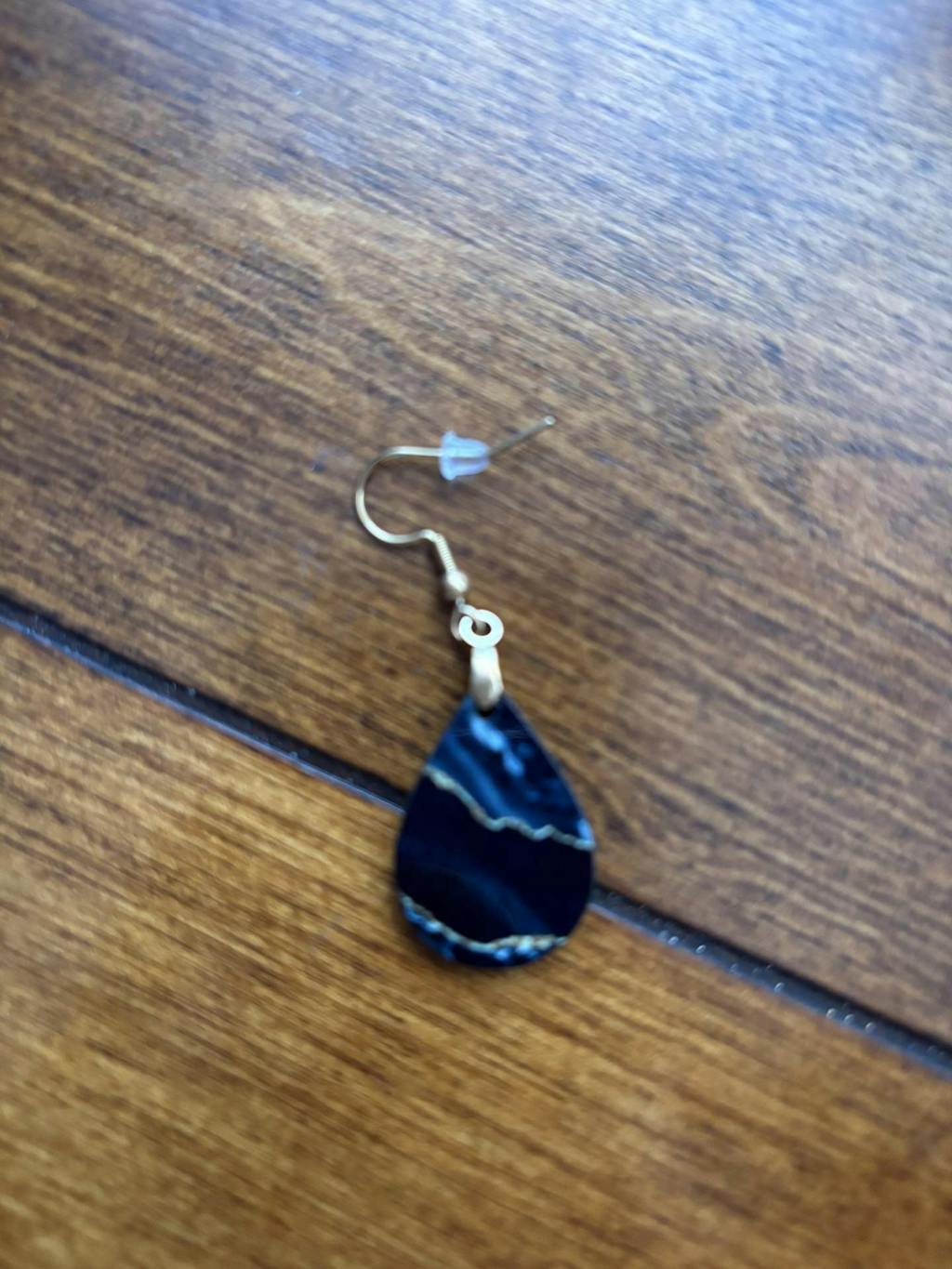 Make a sleek, sophisticated statement with these Black & Gold Teardrop Earrings. Featuring a marbled black design with shimmering gold accent lines, these earrings offer the high-end look of geode-inspired stone with none of the weight.