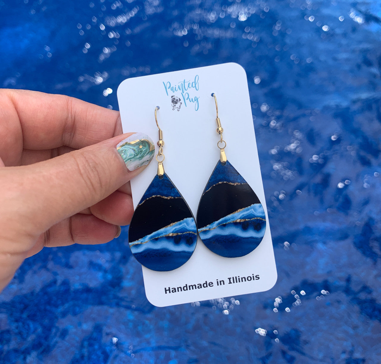 Blue and Gold Teardrop Earrings – The Original Viral Pair, Handmade in the USA