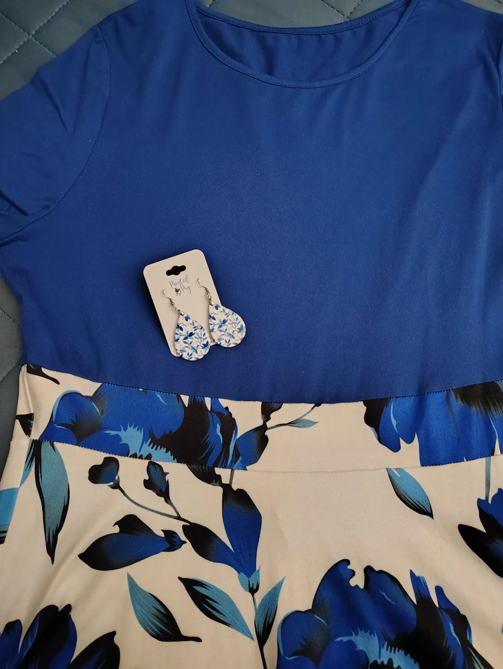 Blue & White Floral Teardrop Earrings – Lightweight Classic Floral Dangles