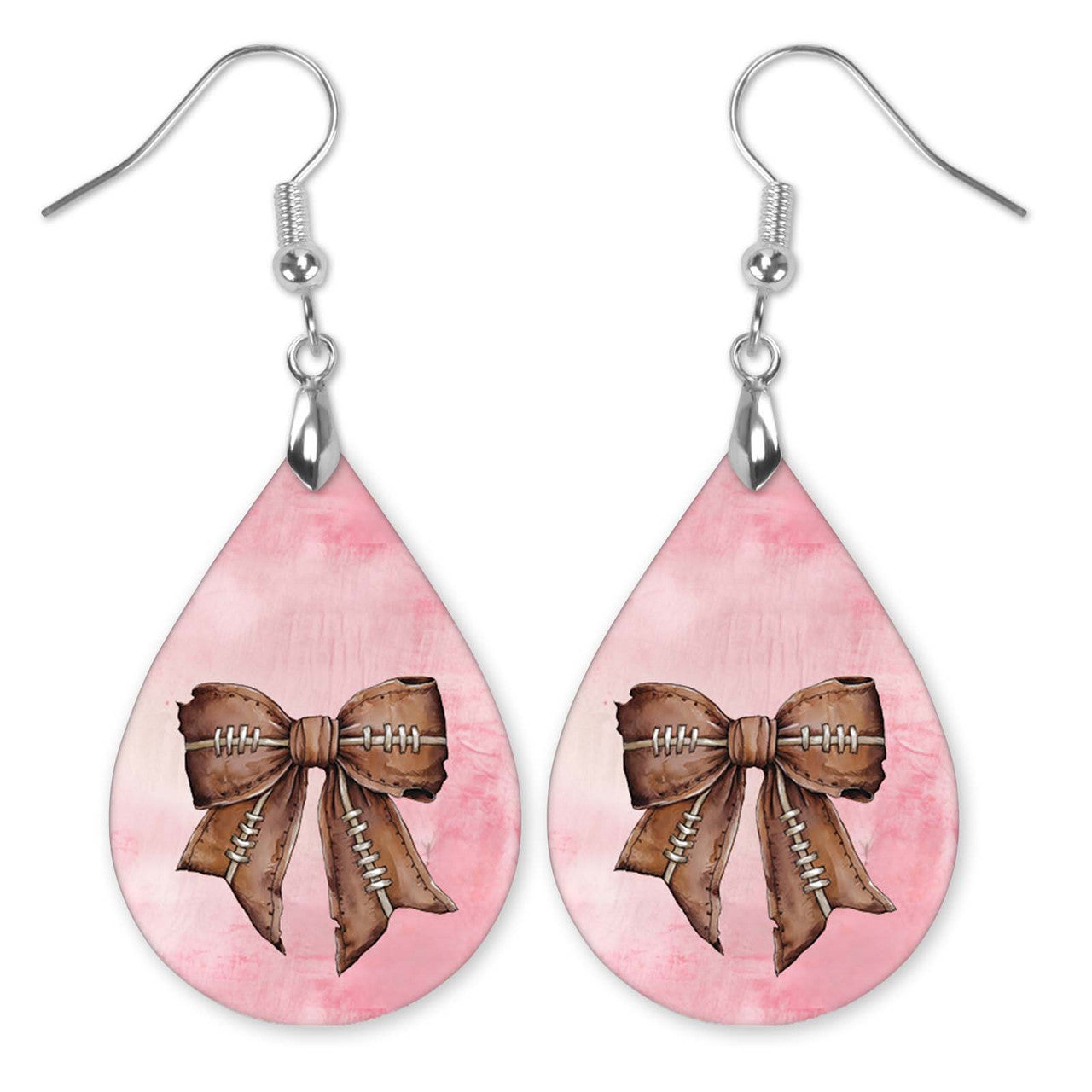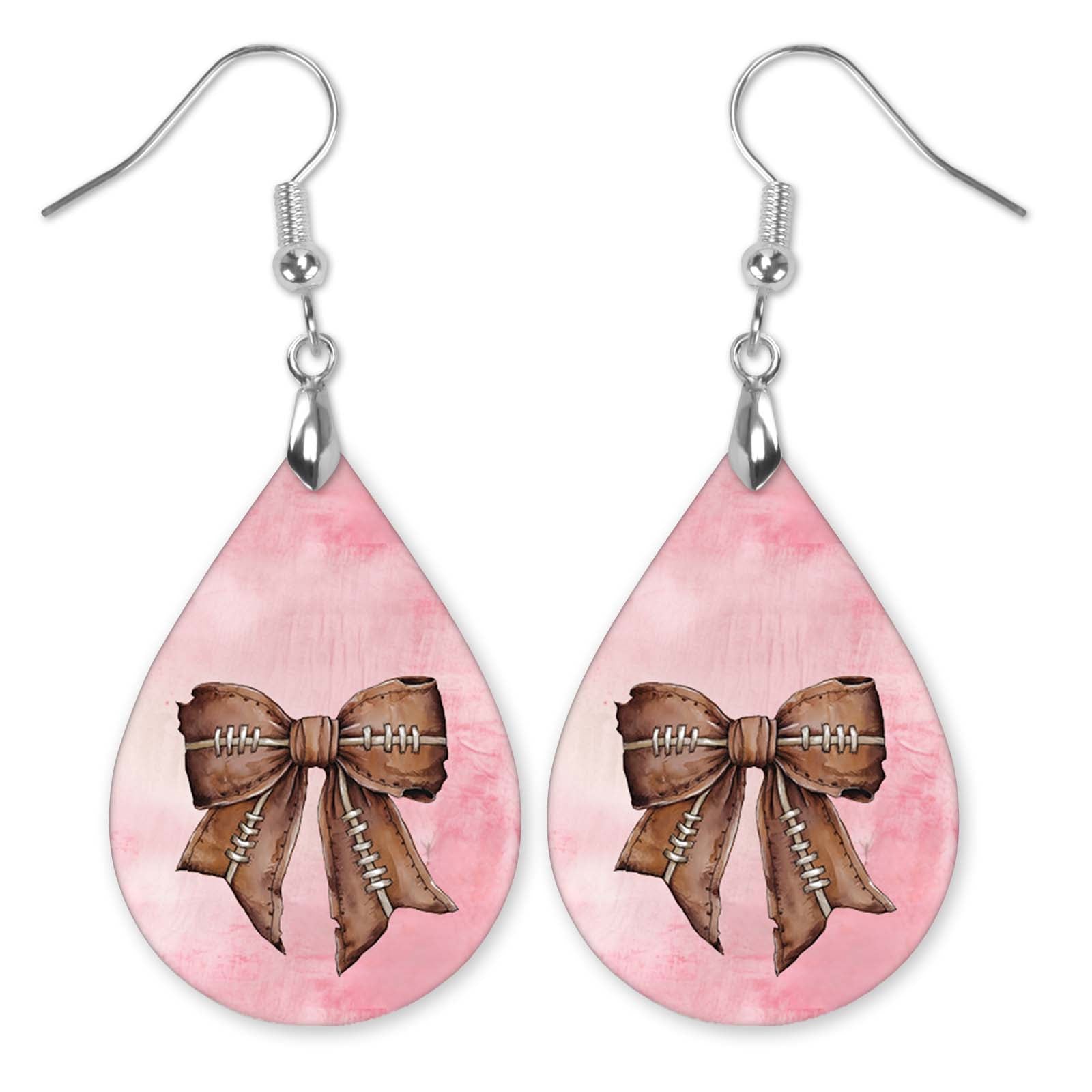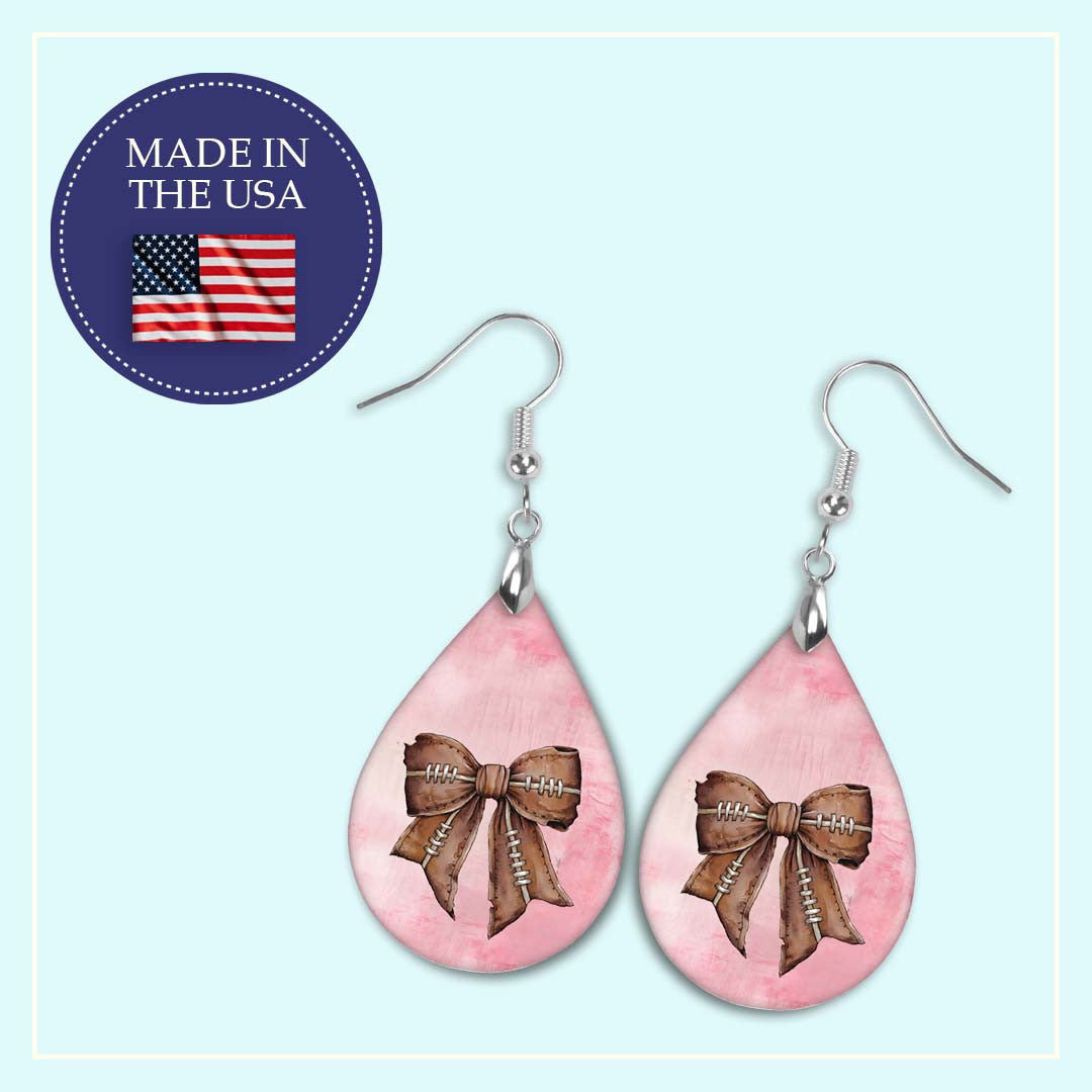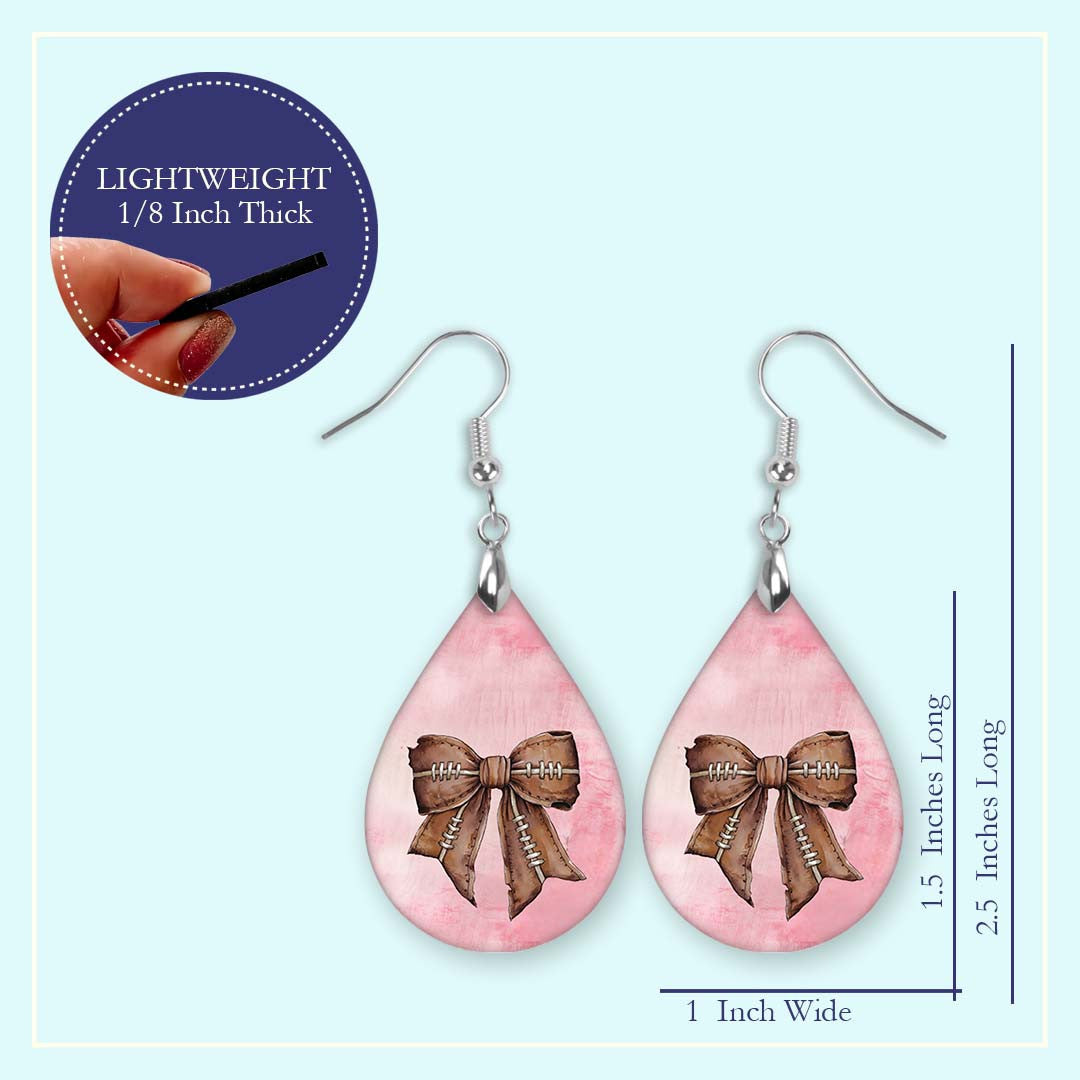 Football Earrings Pink Dangle Boho Printed Wood Coquette Bow