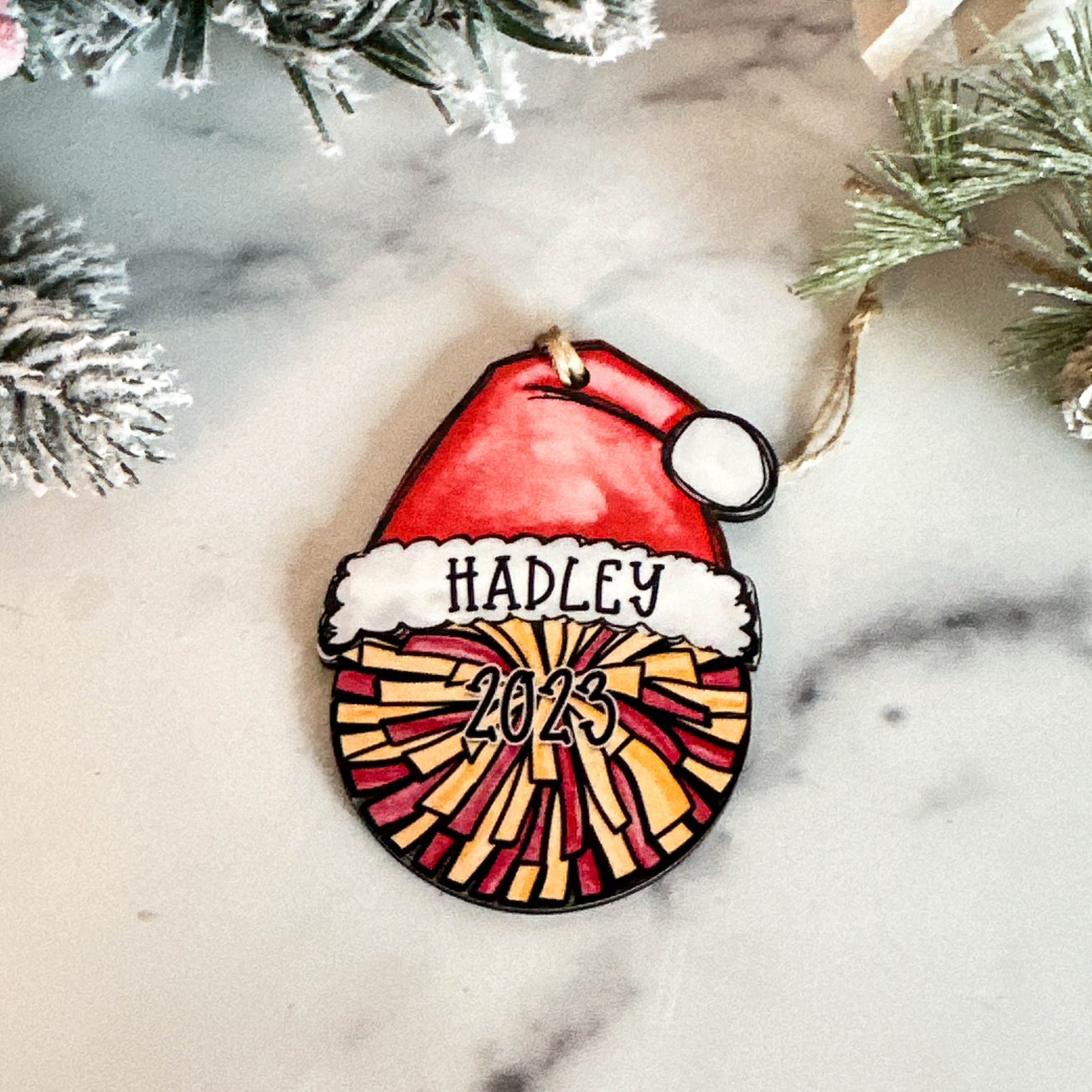 Personalized Cheer Pom Ornament – Custom Name, Number & Year