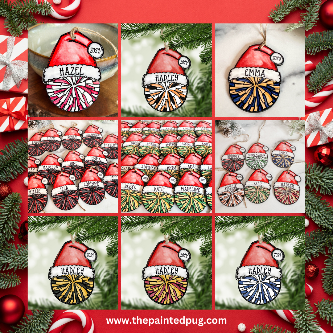 Celebrate your favorite cheerleader with this personalized Christmas ornament! Featuring a festive Santa hat design, each ornament is customized with the cheerleader’s name and year. A perfect keepsake for athletes, teammates, or coaches, it makes a thoughtful holiday gift they’ll treasure year after year.