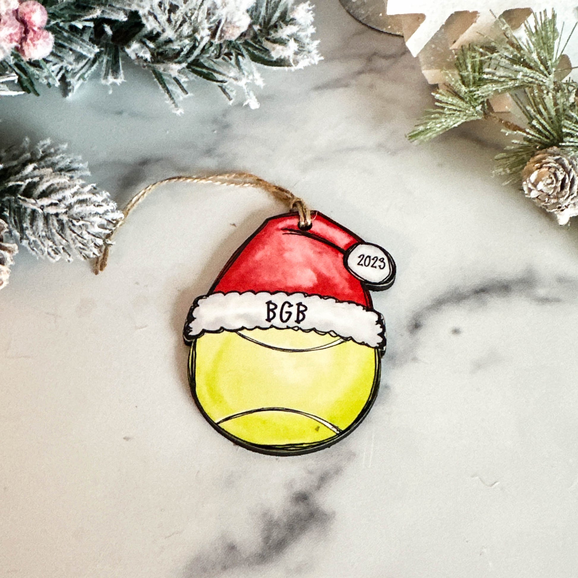Celebrate your favorite tennis player with this personalized Christmas ornament! Featuring a festive Santa hat design, each ornament is customized with the player’s name, number, and year. A perfect keepsake for athletes, teammates, or coaches, it makes a thoughtful holiday gift they’ll treasure year after year.