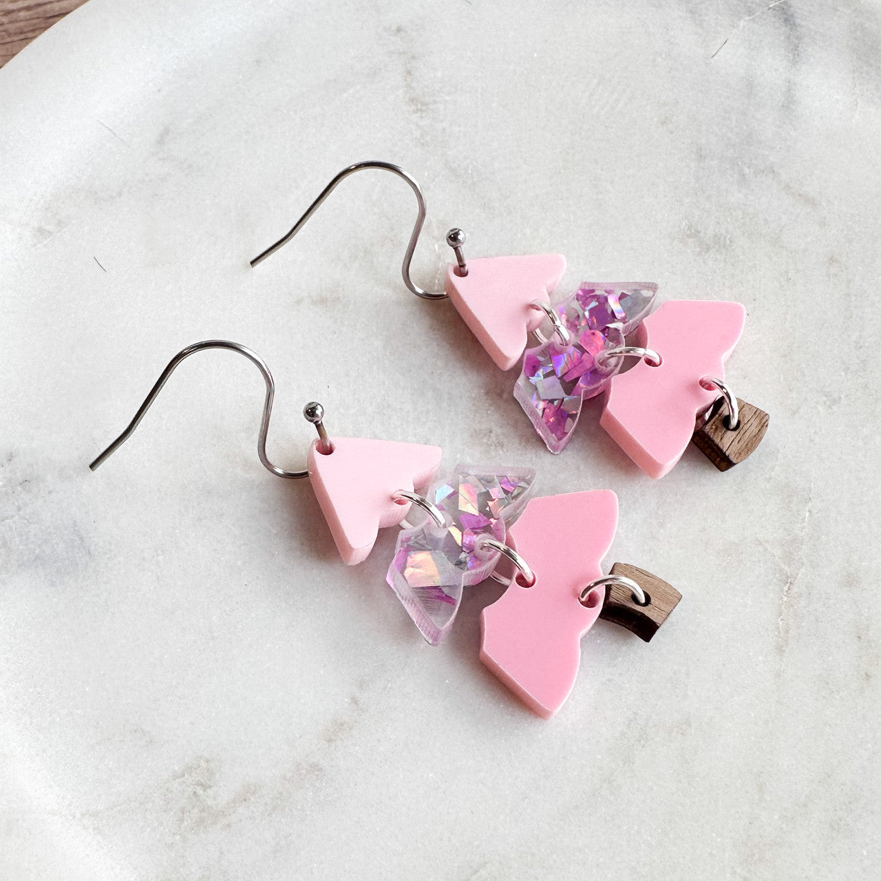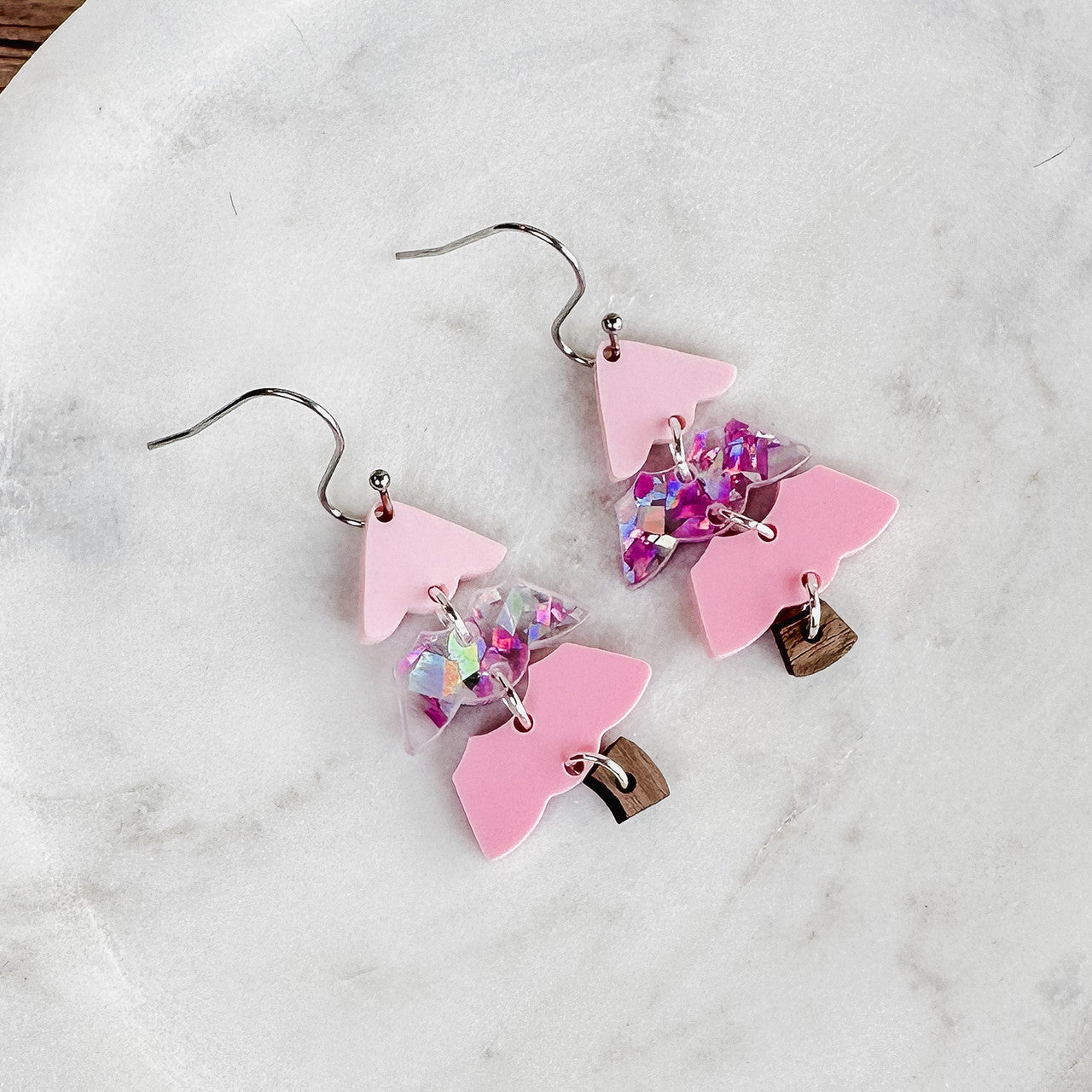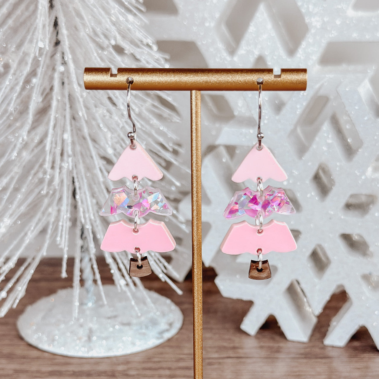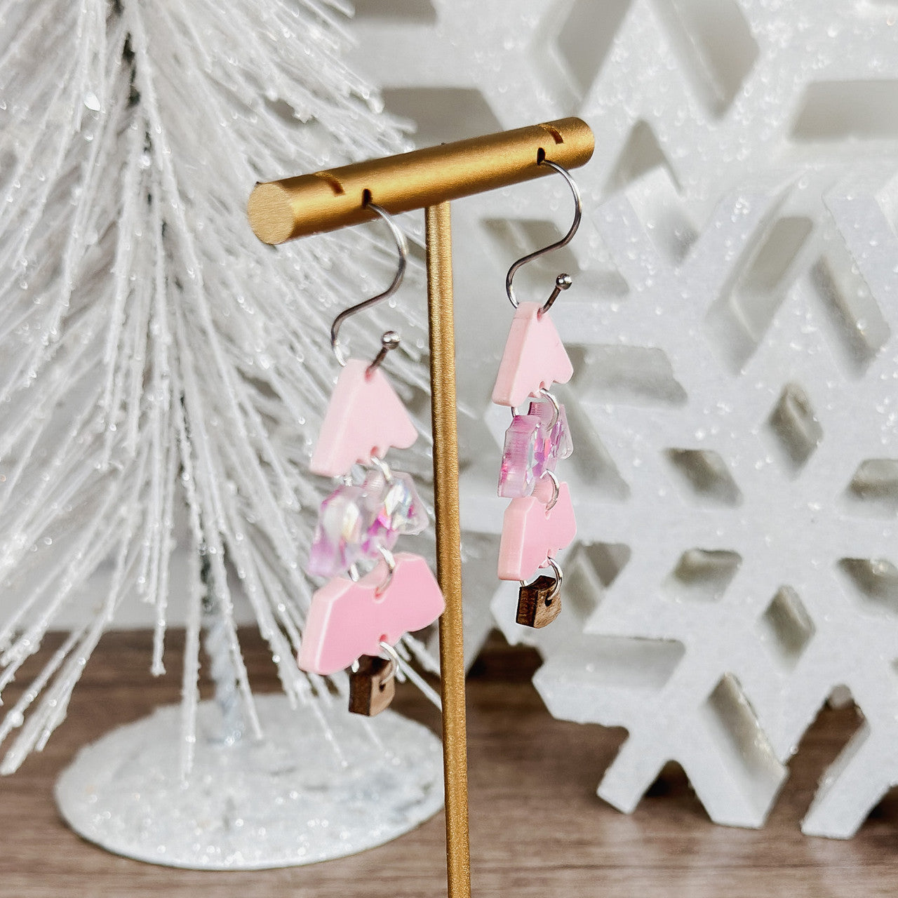 Pink Christmas Tree Dangle Earrings – Lightweight Holiday Acrylic Jewelry