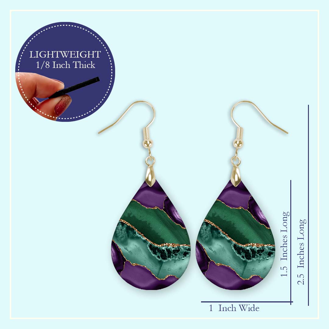 Elevate your everyday style with these striking Purple & Green Teardrop Earrings. Featuring swirling layers of deep purple and emerald green with glittery gold accents, this statement pair offers a rich, eye-catching design that works for any season. Whether you're heading to a fall festival, holiday event, or simply dressing up your day, these earrings add a bold, artistic flair.