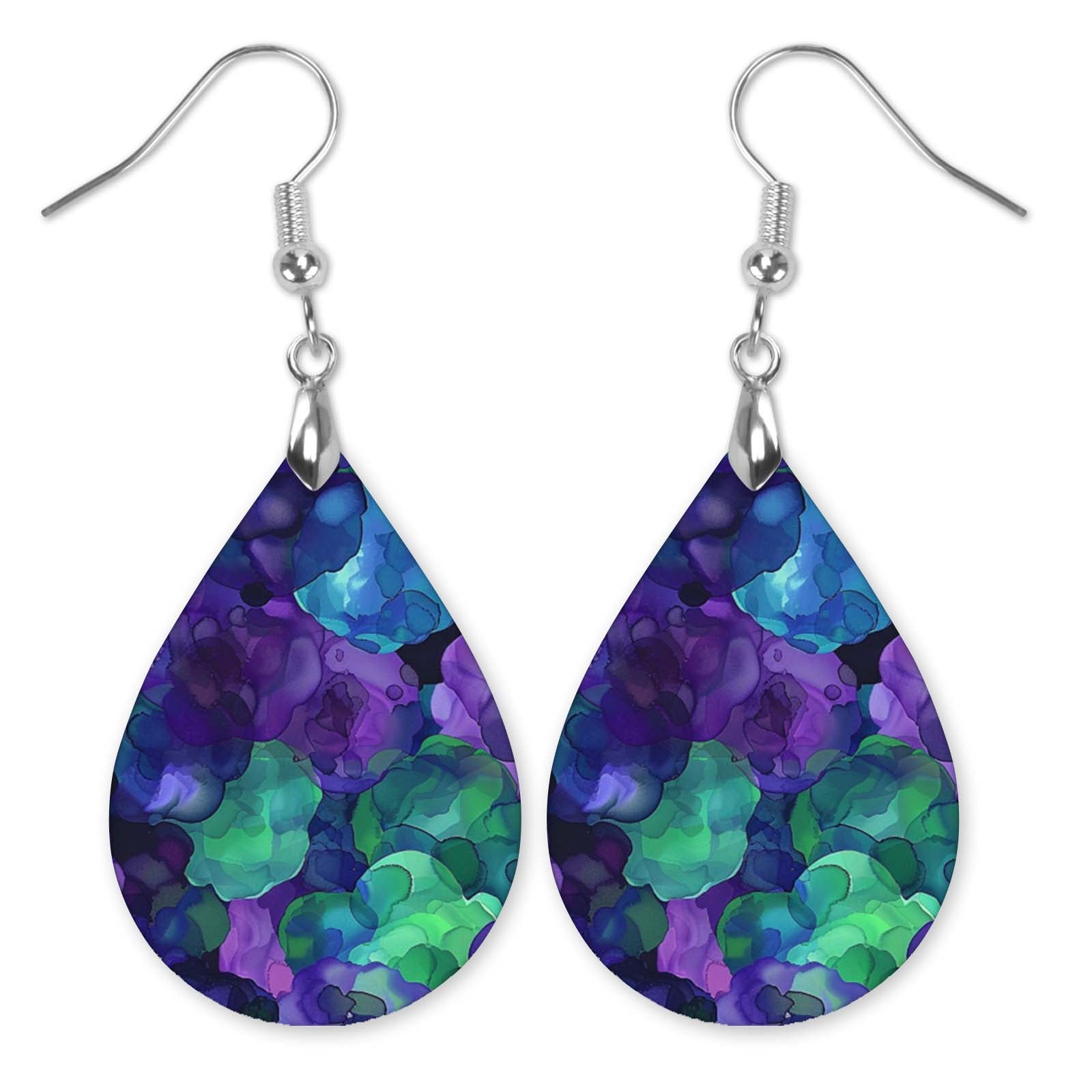 These Purple & Green Watercolor Teardrop Earrings are like wearing art. With a fluid, abstract blend of purples, blues, and greens, they offer a unique pop of color that’s both playful and modern. Each pair is printed on lightweight MDF wood and finished with hypoallergenic stainless steel earwires for comfortable, all-day wear.