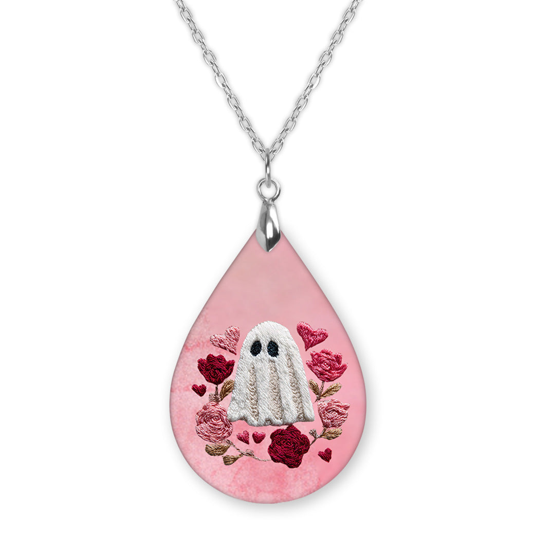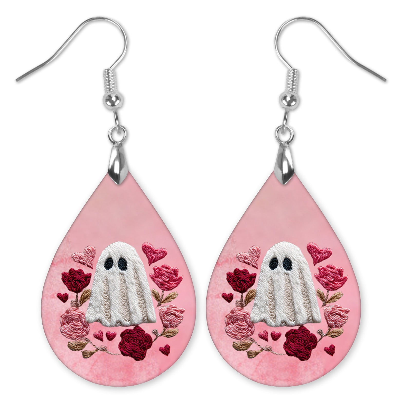 Valentine Ghost Teardrop Earrings – Pink Floral Valentine Dangle Earrings